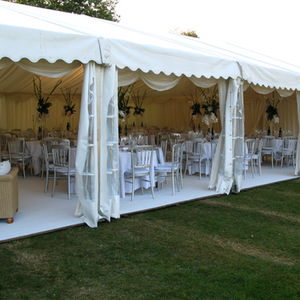 We undertake all events where a good temporary construction is required, supplying marquees in almost any shape, style, or configuration that may be needed in order to make your particular function work. Remember - it's not only wet, cold weather protection when a marquee is required, but equally hot sun can spoil a party, wedding, corporate event or business promotion in the same way if shade is not available. We supply everything needed from heating and lighting, dance floors and staging to create the environment that's right for you.
